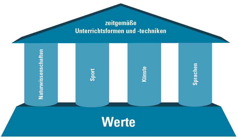 Mit einer Vielzahl von Wahlkursen, die sich beispielsweise mit dem Theaterspielen und unterschiedlichen Sportarten ebenso beschäftigen wie mit dem hochprofessionellen Erstellen von Filmbeiträgen in unserem kleinen Fernsehstudio, möchten wir nicht nur Wissen und Können bilden, sondern auch Herz und Charakter unserer Schüler schulen. Denn im Mittelpunkt all unseres Wirkens steht das Kind, der junge Erwachsene, der Mensch, den wir auf diesem bewährten gymnasialen Weg zur geistigen Reife, zum Abitur führen möchten.